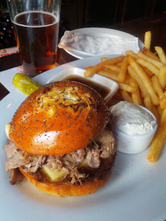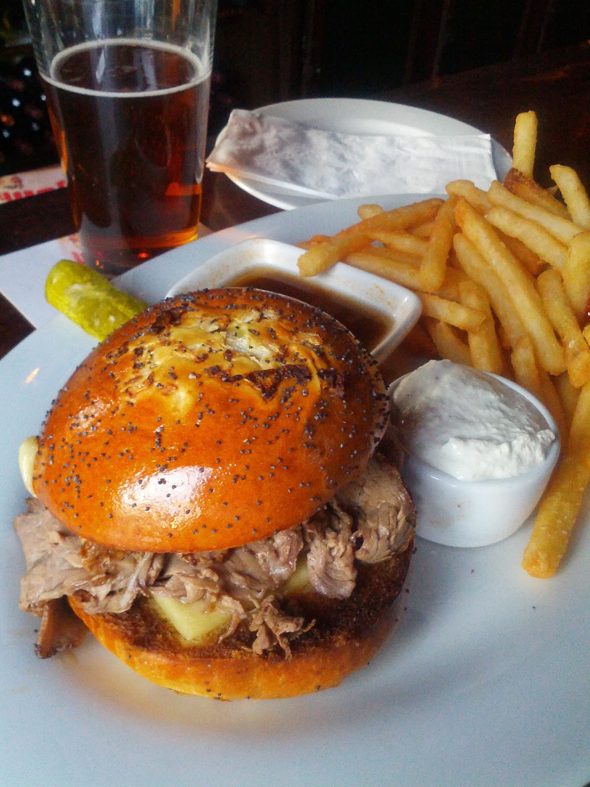 Ahh yes. Here we have the French Dip sandwich at Four Dogs Tavern in Marshalton. But I should have asked for regular horseradish instead of the eating the creamy kind that came with it. But $15 is kinda steep. If you're reading this Four Dogs Tavern please lower it to a more reasonable $11. Thanks.